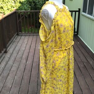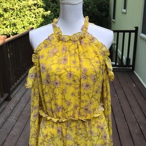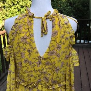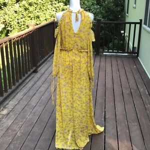 New! AVEC LES FILLES size 6 canary yellow floral maxi dress. Ruffles around neck, shoulders and waist. Cold shoulder long sleeves with tie cuff. Back neck tie with keyhole and back zipper. Partially lined till knee. Absolutely gorgeous!