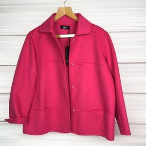 AVERARDO BESSI Raspberry Pink Short Jacket. 100% wool soft fabric. Two front pockets, front snaps closure, 3/4 length sleeves, cuffs with slits. Lined sleeves, unlined body. Made in Italy. Size US 12, armpit to armpit 21,5 inches, pit to cuff sleeves length 15 inches, center back length 24 inches. New with tags, excellent condition. J32