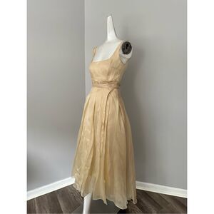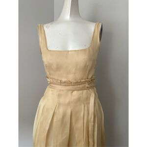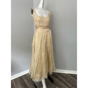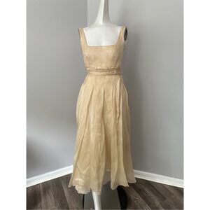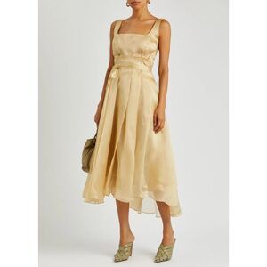 NWT AWAKE Mode Sleeveless Asymmetric Hem Silky Organza Midi Dress Beige $2035