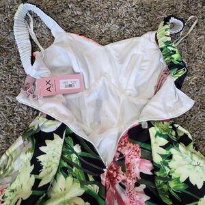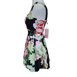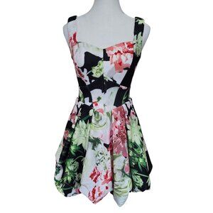NWT AX Paris Multi Floral Print Sweetheart Neckline Bubble Hem Mini Dress Size 4