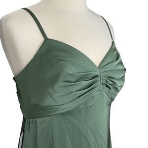 NWT AZAZIE LINIA Eucalyptus Green Mermaid Pleated Stretch Satin Dress Sz A12