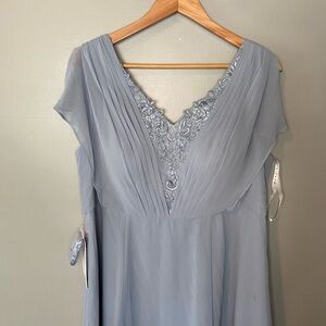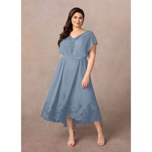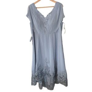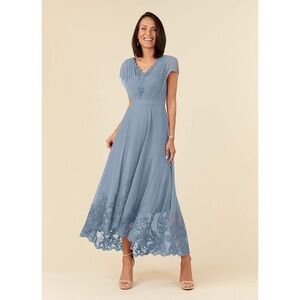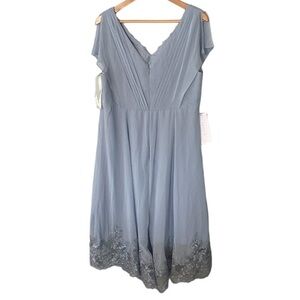 NWT AZAZIE Palana Dusty Blue A-Line Lace Chiffon Dress