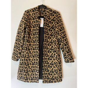 NWT Aakaa Womens Leopard Print Midi Coat Medium