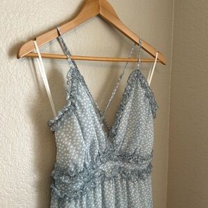 NWT, Aakaa Women’s Low Back Cami Strap Floral Print Blue & White Mini Dress, Med