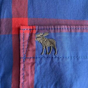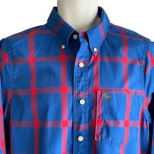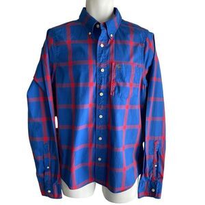 Abercrombie & Fitch A&F Shirt Mens Large Windopane Plaid Muscle Fit Blue Red - New with tags attached