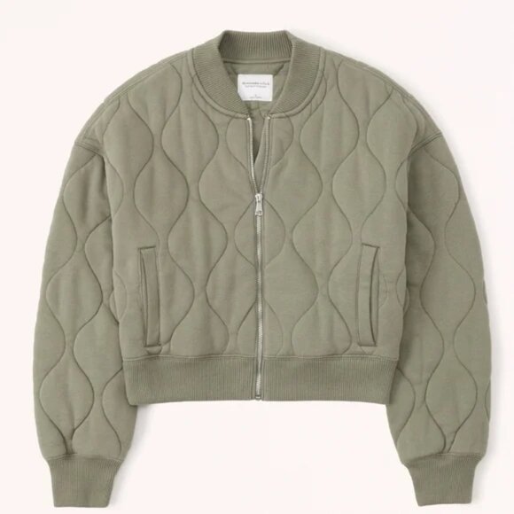 NWT Abercrombie & Fitch Army Green Onion Quilted Soft Bomber Jacket