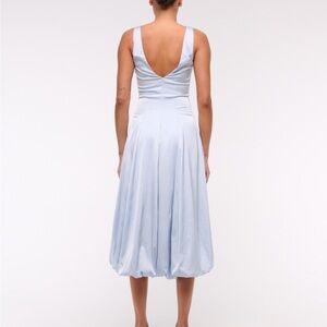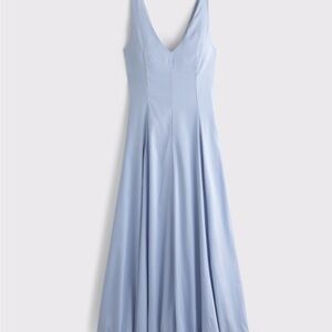 NWT Abercrombie & Fitch Blue V-Neck Bubble Hem Silk Drop Waist MIDI Dress XS