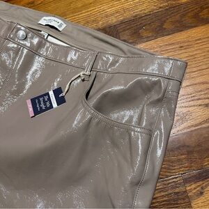 Abercrombie & Fitch Curve Love The 90s Straight Ultra High Rise vegan leather pant. Shiny tan hue, classic 5-pocket, seaming at back of knees. New with tags.