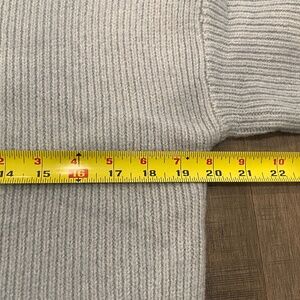 See photos for approx. pit to pit, length and sleeve length measurements. Since the sweater has dropped shoulders, I took a measurement from the mock neck down to sleeve hem as well as from where the drop sleeve begins down to the hem.