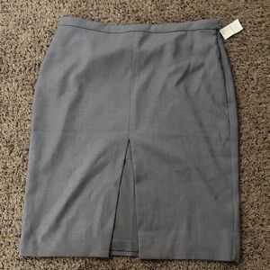 Brand new with tags. Originally $70. Gray front split pencil skirt. Has a side zipper with button. Size large.