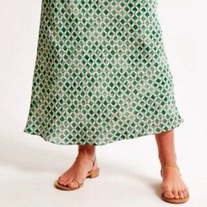 NWT Abercrombie & Fitch Green Crinkle Geometric Maxi Skirt XSP Boho Festival