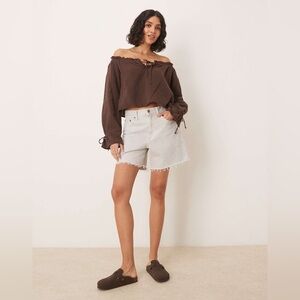 NWT Abercrombie & Fitch High Rise The Loose Jean Shorts - Size 33 - Light Gray