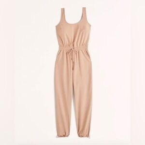 NWT Abercrombie & Fitch Light Brown Traveler Trendy Athleisure Jumpsuit size L