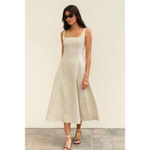 NWT Abercrombie & Fitch Linen Blend Square Neck Midi Dress Women’s Sz M