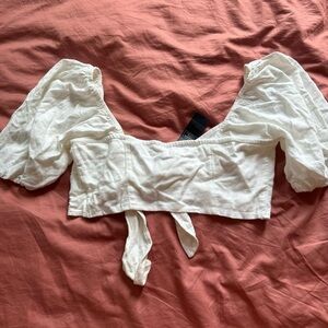 NWT Abercrombie & Fitch Linen Blend Tire front Bubble Sleeve white Crop Medium