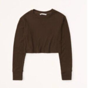 Abercrombie & Fitch long-sleeve ribbed crew neck top in dark brown. Made from a super soft, stretchy rib knit fabric that’s both cozy and flattering. Features a cropped length with classic crew neckline and long sleeves — perfect for layering or wearing on its own.