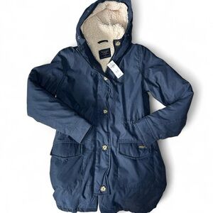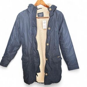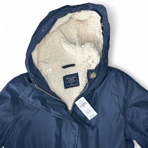 NWT Abercrombie & Fitch Navy Sherpa-Lined Hooded Coat – Size Small