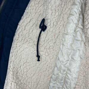 new with tags! Cozy meets functional in this Abercrombie & Fitch sherpa-lined jacket. Designed with a 2-way front zipper, button placket, adjustable hood and waist drawcords, snap-front pockets, and a slightly longer back hem for extra warmth. Perfect for chilly days and casual layering.