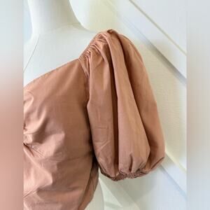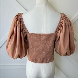 NWT Abercrombie & Fitch O-Ring Sweetheart Neck Puff Sleeve Crop Top Peach Sz Med