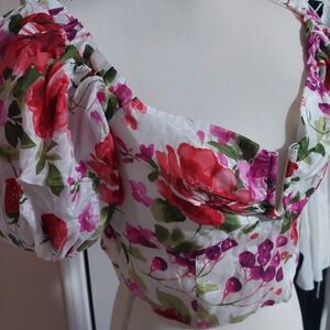 NWT Abercrombie & Fitch Red and Pink Crop Top Sz L