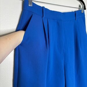 New with tags size 31/12 TALL high rise pleated front wide leg dress pants with pockets in bright cobalt blue shade. Waist measures 15.25” across, rise is 13” and inseam is 32”