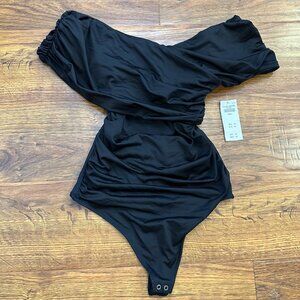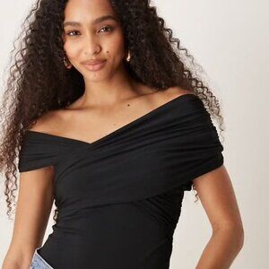 Brand new with tags Abercrombie and Fitch Soft A&F Collection off shoulder asymetric wrap bodysuit in black