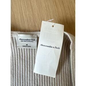 The NWT Abercrombie & Fitch Soft Ribbed Wrap Bodysuit in Size Medium is a stylish and versatile top perfect for casual occasions. Made from a blend of polyester, nylon, and viscose, this beige bodysuit features a sweetheart neckline, long sleeves with classic fitted sleeves, and a snap closure for easy wear. The slim fit and stretch fabric make it comfortable and flattering, while the knit construction adds texture and depth to the design. Perfect for women looking for a classic yet trendy addition to their wardrobe.