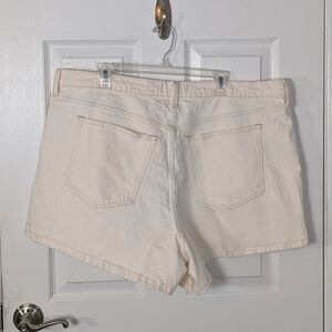 Women, Woman, Women's, Size 35 Waist, Size 20, Plus Size, Plus Sized, Mid Size, Denim, Jean, Shorts, Summer, Spring, Classic, Versatile, A&F, Abercrombie&Fitch, Light Wash, The 90s Cutoff Short, Curvy, Cutoff Shorts, Distressed, Distressing, High Waist, High Rise, Waist 35, Button Closure, Everyday, Closet Staple, V Waistband, Blogger's Favorite, Trendy, Blogger's Fav, Abercrombie and Fitch, White Denim, Off White, Ivory, Cream, Button Fly, Criss Cross Waistband, Criss-Cross, Contemporary