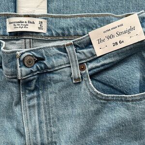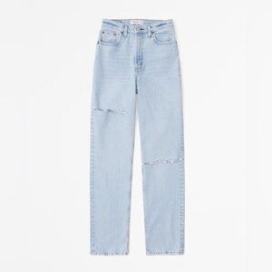NWT Abercrombie & Fitch Ultra High Rise 90s Straight Jean in Light Destroyed 6