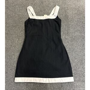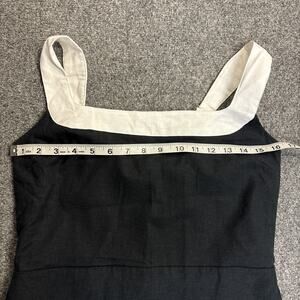 This product is a new with tag Abercrombie & Fitch women's medium linen sundress in black with white accents. It features a sleeveless design, square neckline, and pullover closure. This knee-length dress is perfect for a party, cocktail event, or casual summer outings. Made from breathable linen, it is ideal for warm weather in spring or summer, embodying a beachy, bohemian, and classic style. Perfect for a day out or evening event, this dress by the trusted brand Abercrombie & Fitch is a versatile addition to any wardrobe.