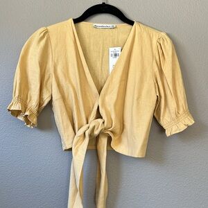 NWT Abercrombie & Fitch cropped linen tie front blouse size XXS