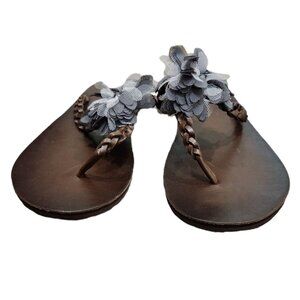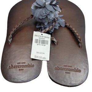 NWT Abercrombie Flower Flip Flops Slip On Beach Sandals Girl Size XL 8/9