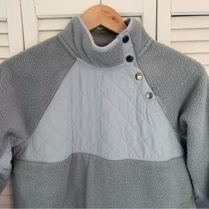 Abercrombie Kids, Girls Fleece Jacket, Snap Pullover, Kangaroo Pocket, Quilted Panel, Cozy Outerwear, Fall Winter Layer, Youth Size 15/16, Asymmetrical Neckline, Gray Fleece, NWT Jacket, Soft Warm Pullover