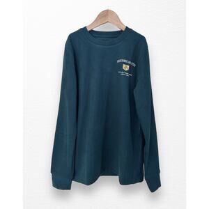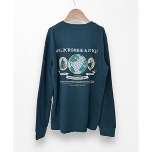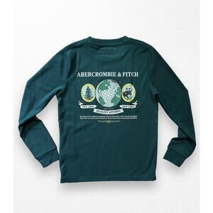 Forest green super-soft lightweight waffle knit fleece top from Abercrombie & Fitch in size 11/12. Features logo and crest on front and larger graphic on back with pine tree and moose. New with tags.