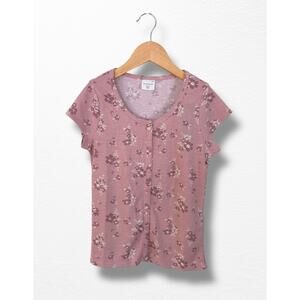 New with tags pink with floral print top from Abercrombie Kids in size 11/12. Waffle knit, scoop neck, buttons down front. 65% polyester/35% viscose.