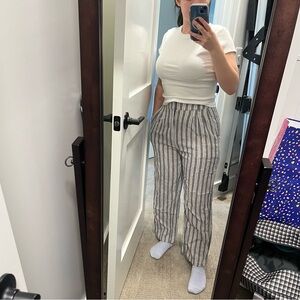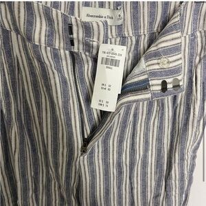 NWT Abercrombie Size Small Ultra High Rise Linen Stripe Pants Blue White