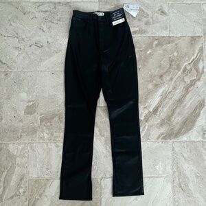 NWT Abercrombie Ultra High Rise 90s Slim Straight Jean Coated Black w/ Ankle Slits (Size 25)