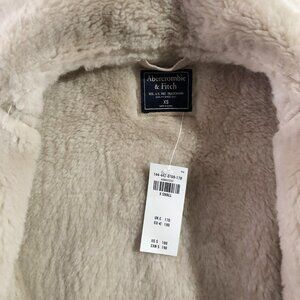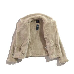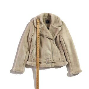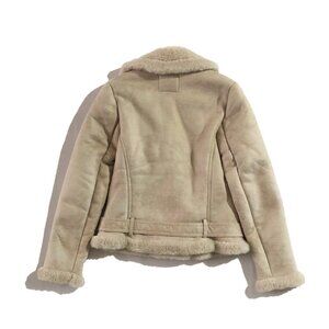NWT Abercrombie and Fitch Moto Jacket Womens Size XS Beige Suede Faux Shearling