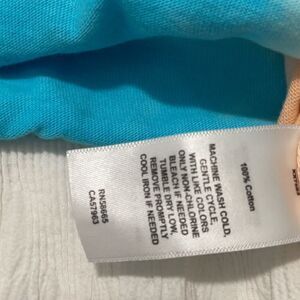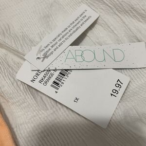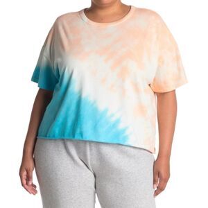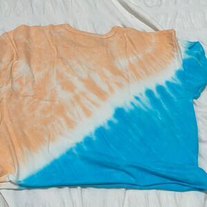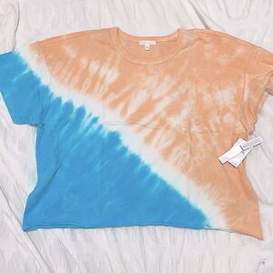 NWT- Abound - 1X,2X & 3X. Orange (looks more light orange-peach to me) & blue tie dye top, raw bottom cut curled edges