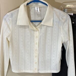 NWT Abound cream ivory long sleeve button down top with collar — crop fit textured cardigan style top
