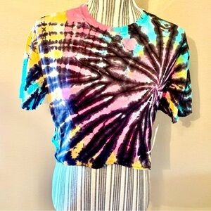 NWT Abound Crop Top Small Tie Dye Cotton Modal Black Teal Pink Yellow Stretch
