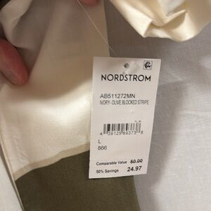NWT Abound Men's Casual Olive and Cream Striped Shirt Large