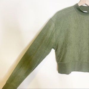 NWT Abound Olive Night Mock Neck Long Sleeve Cropped Fleece Pullover Small