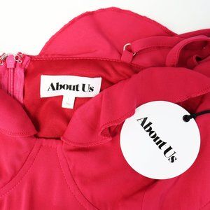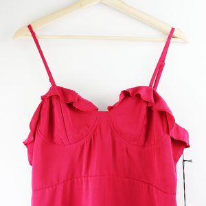 NWT About Us Irene Ruffle Dress Berry Pink Ruffle Trim Sweetheart Neckline Large