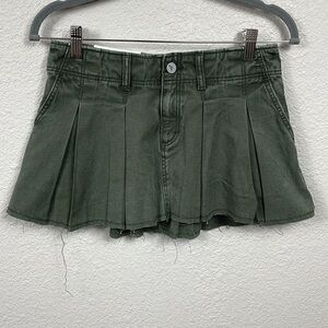 NWT Abrand Jeans Chloe Pleated Micro Mini Skirt Green Denim Y2K Sz 26