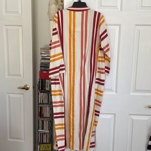 Tunic dress with side seam pockets and self sash, no longer available. Ptp 21”, flat waist 25”, length 47”.