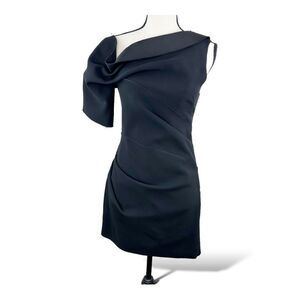 NWT Acler Juniper One-shoulder Crepe Mini Formal Cocktail Dress Black Womens 4