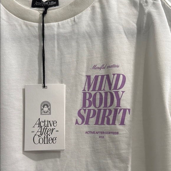 NWT Active After Coffee White Graphic T-Shirt sz m. Mindfulness