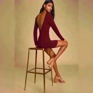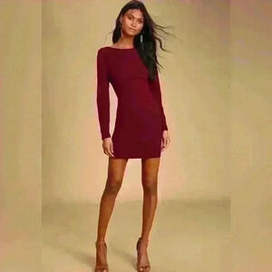 Lulus Exclusive! The Lulus Addyson Burgundy Long Sleeve Backless Bodycon Dress is simply stunning! Medium-weight stretch knit creates a rounded neckline and fitted long sleeves. Darted bodice leads into a bodycon mini skirt that hugs your curves in all the right ways. A plunging open back with V-bar completes this sultry look. Hidden side zipper.