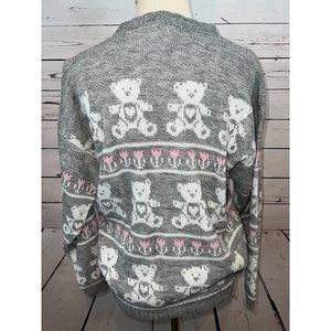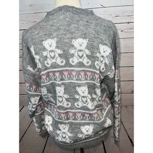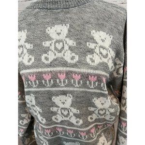 NWT Adele Knitwear Sweater Large Teddy Bears Heart Acrylic USA 80s Vintage Gray